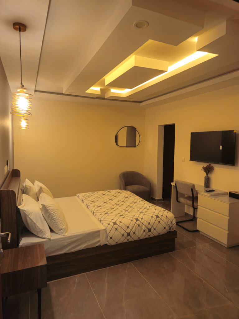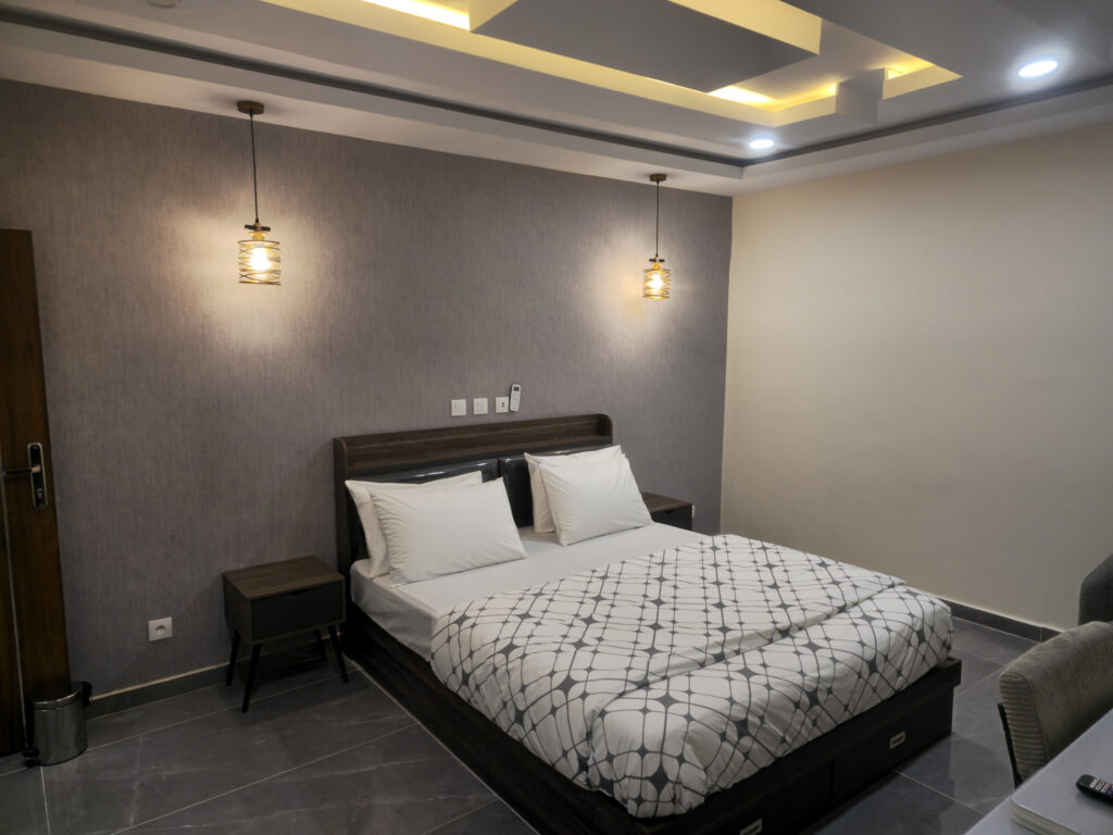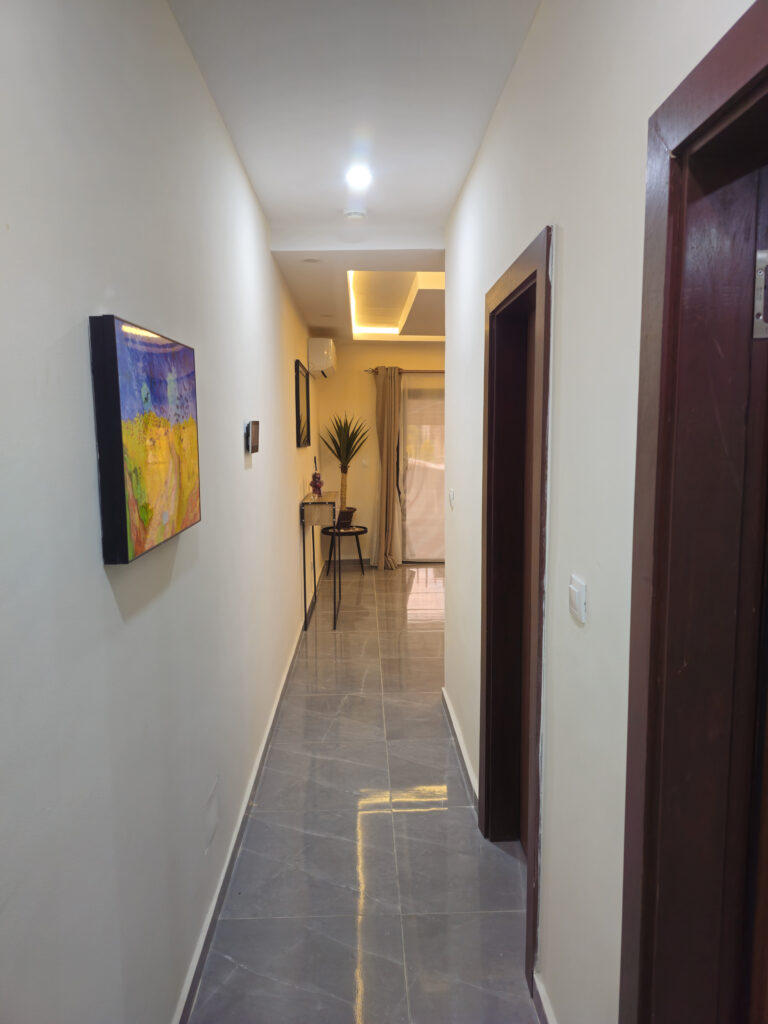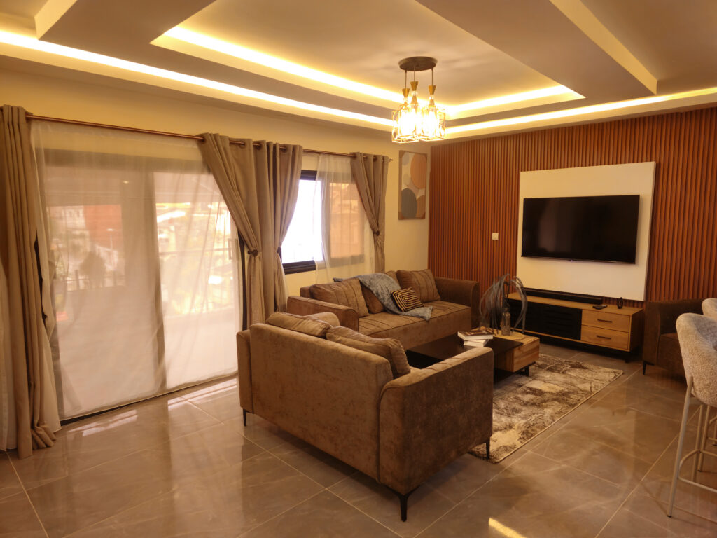 Stylish and fully furnished 1-bedroom apartment featuring a cozy living room, a fully equipped kitchen, and a modern shower. Ideal for couples or business travelers, with complimentary gym access throughout your stay.